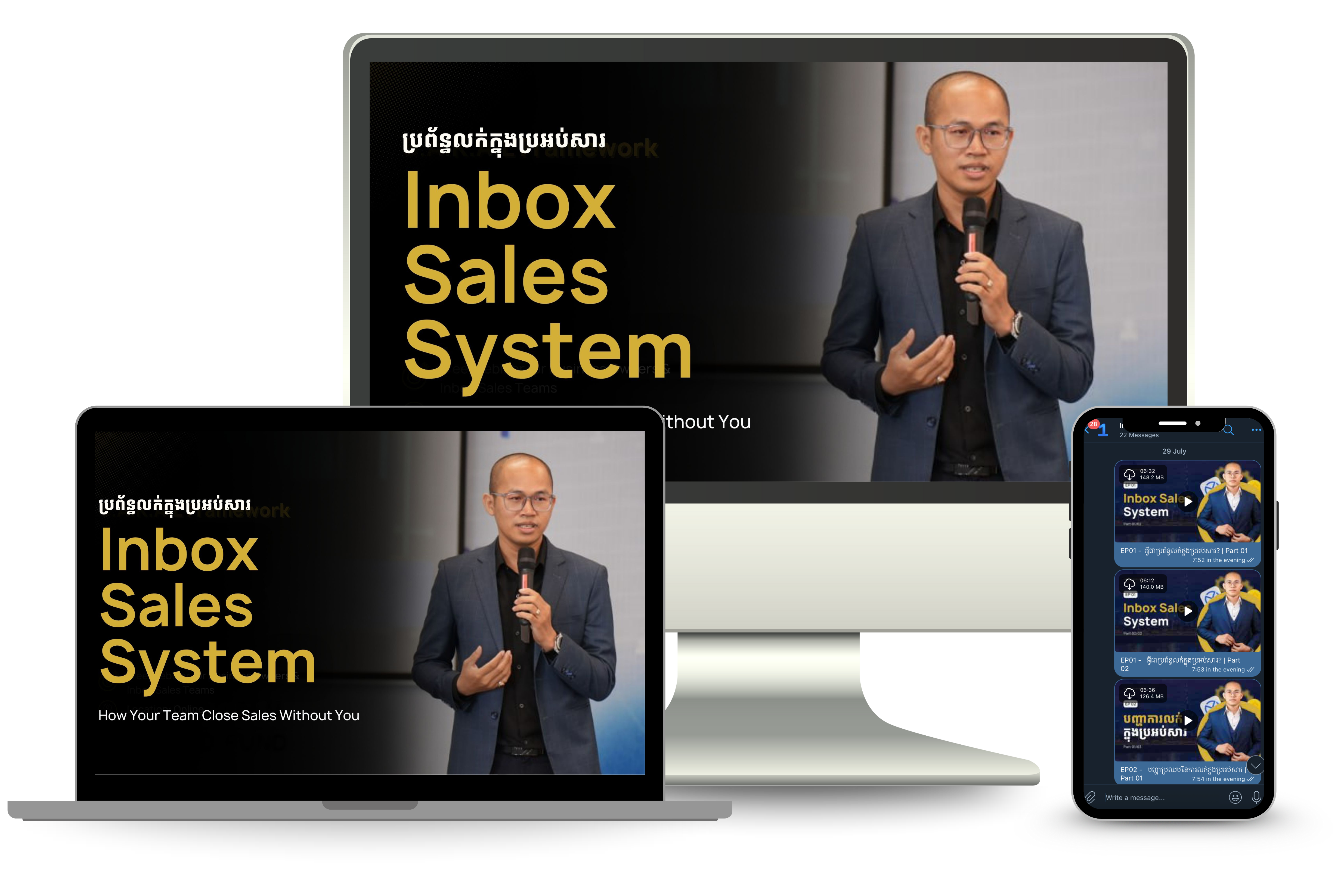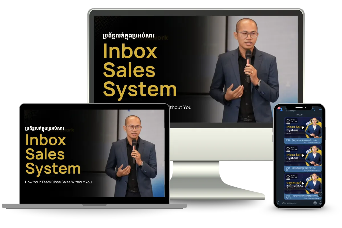 មេរៀន Training: Inbox Sales System: 9 មេរៀន (22វីដេអូខ្លីៗ) ខ្លឹមសារទាំងស្រុងដូចទៅនឹងថ្នាក់រៀនផ្ទាល់
